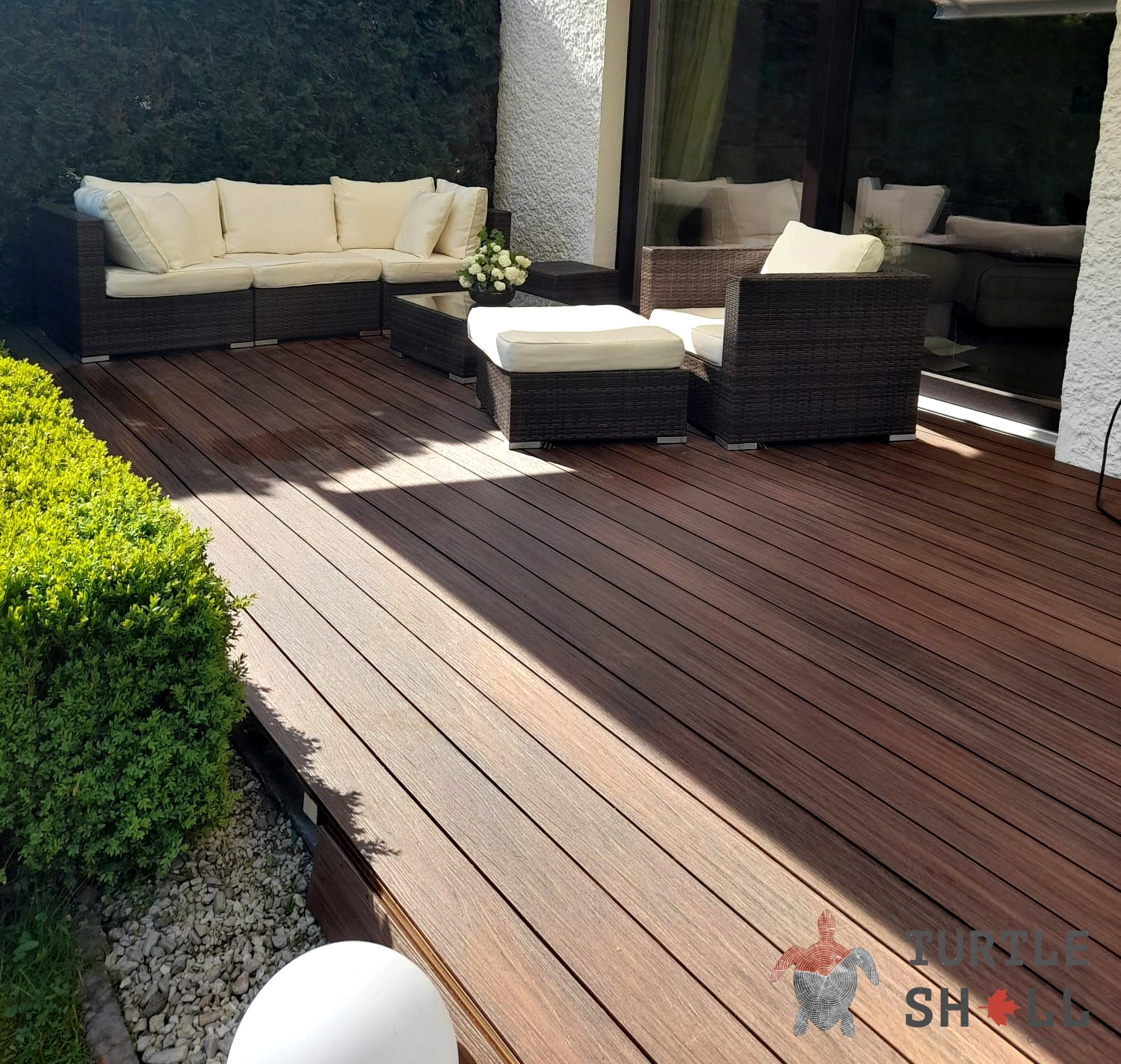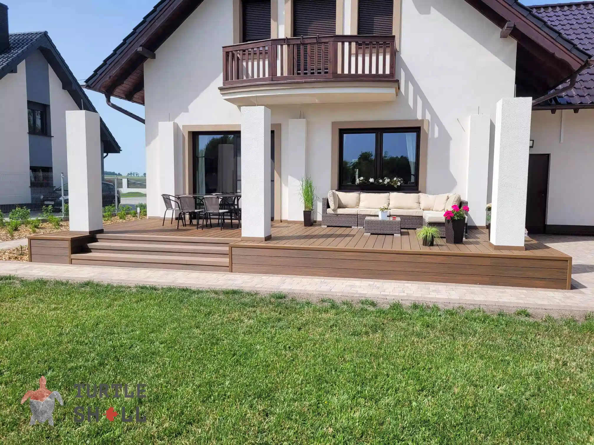 Террасная доска Turtle Shell имеет полнотелую структуру, что делает ее еще более прочной и надежной. Благодаря технологии Co-Extrusion (Dual) она обладает уникальными свойствами, такими как устойчивость к царапинам, пятнам и ультрафиолетовому излучению.